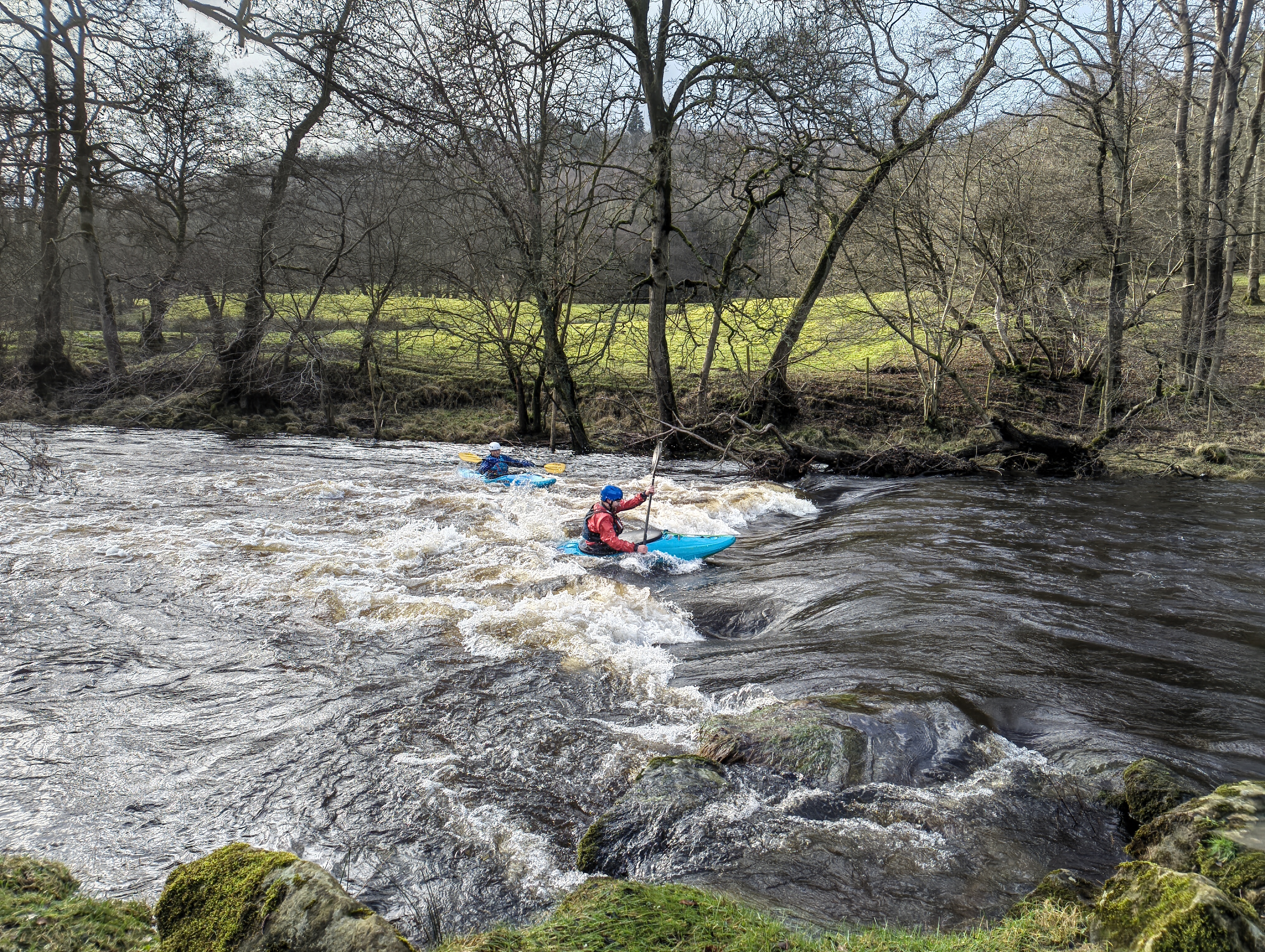 Some of our white water kayakers enjoyed the higher river levels over the winter with a trip to the river Derwent between Hathersage and Curbar. Plenty of wave surfing and the odd bouncey wave train made it a great trip on a rare sunny day in February.