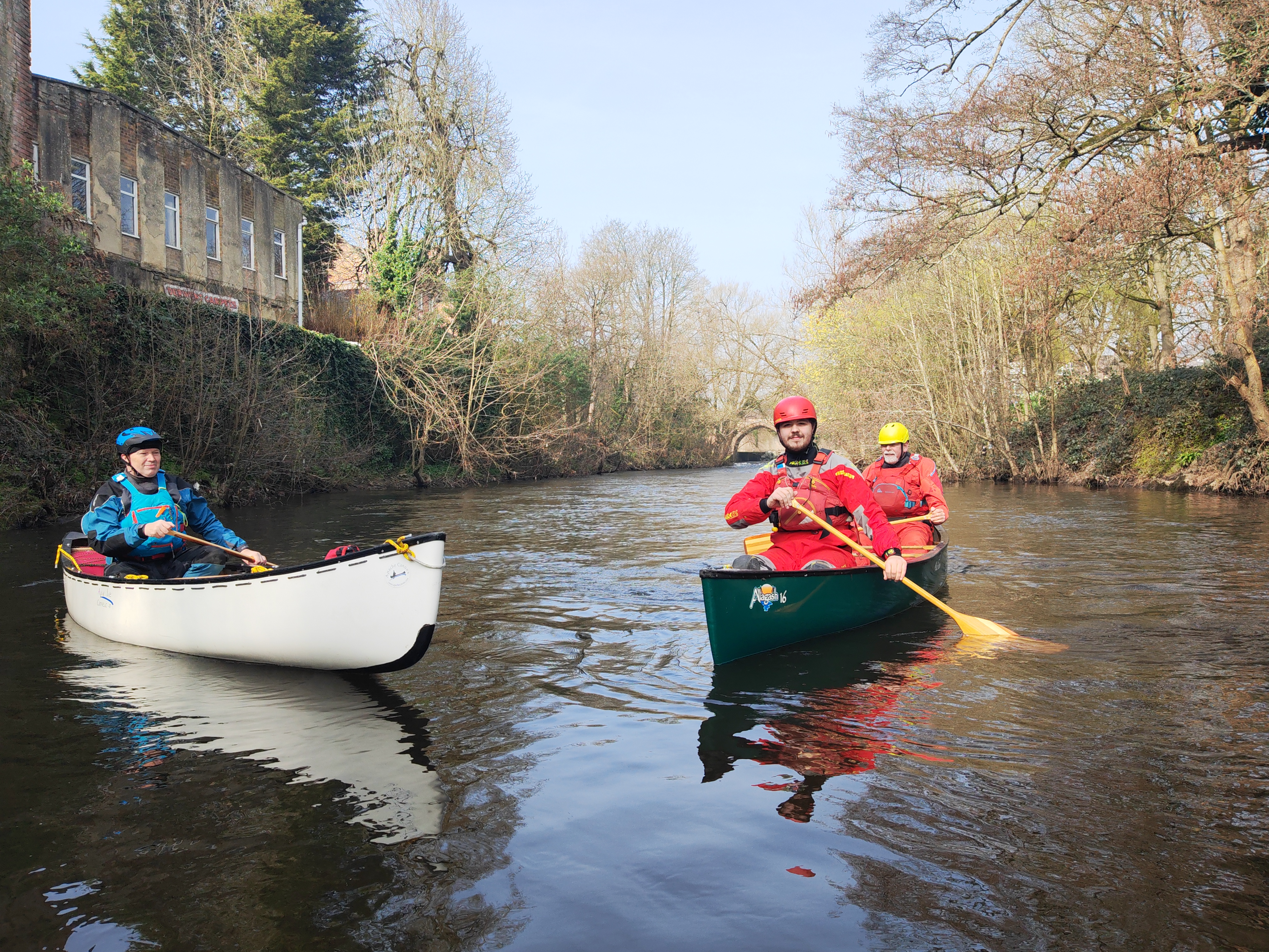 Paddlers from Sheffield Canoe Club and Ichthus Canoe Club took the opportunity or some rare Spring sunshine to head out onto the River Derwent in Canoes. Getting on at Darley Bridge the levels were perfect for practicing moving water skills in open boats. Cromford Weir was a little low to run in canoes so a quick portage before finishing at Cromford Mill.